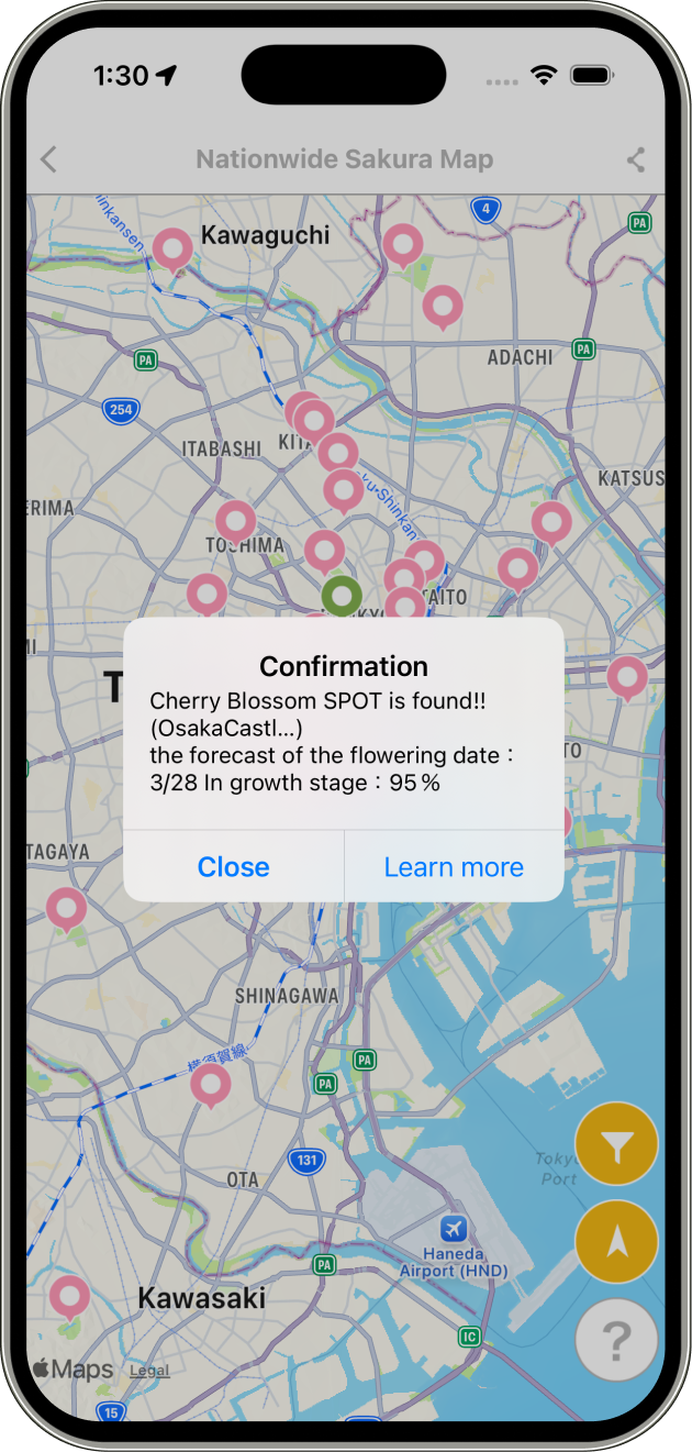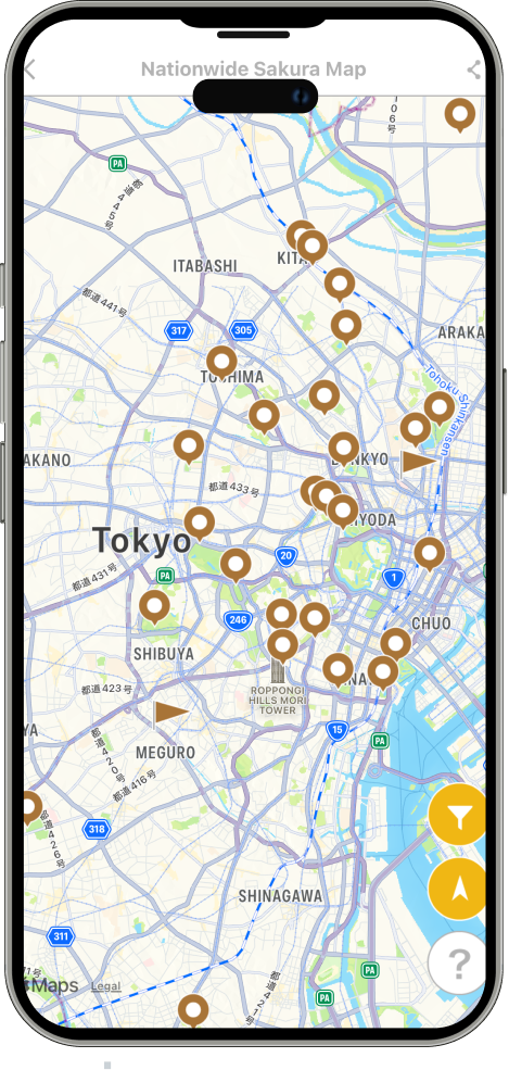 Japan is beautiful wherever you are during cherry blossom season, and you can find great cherry blossom spots even on your everyday walks. This app will notify you when you are approaching a famous cherry blossom spot.
