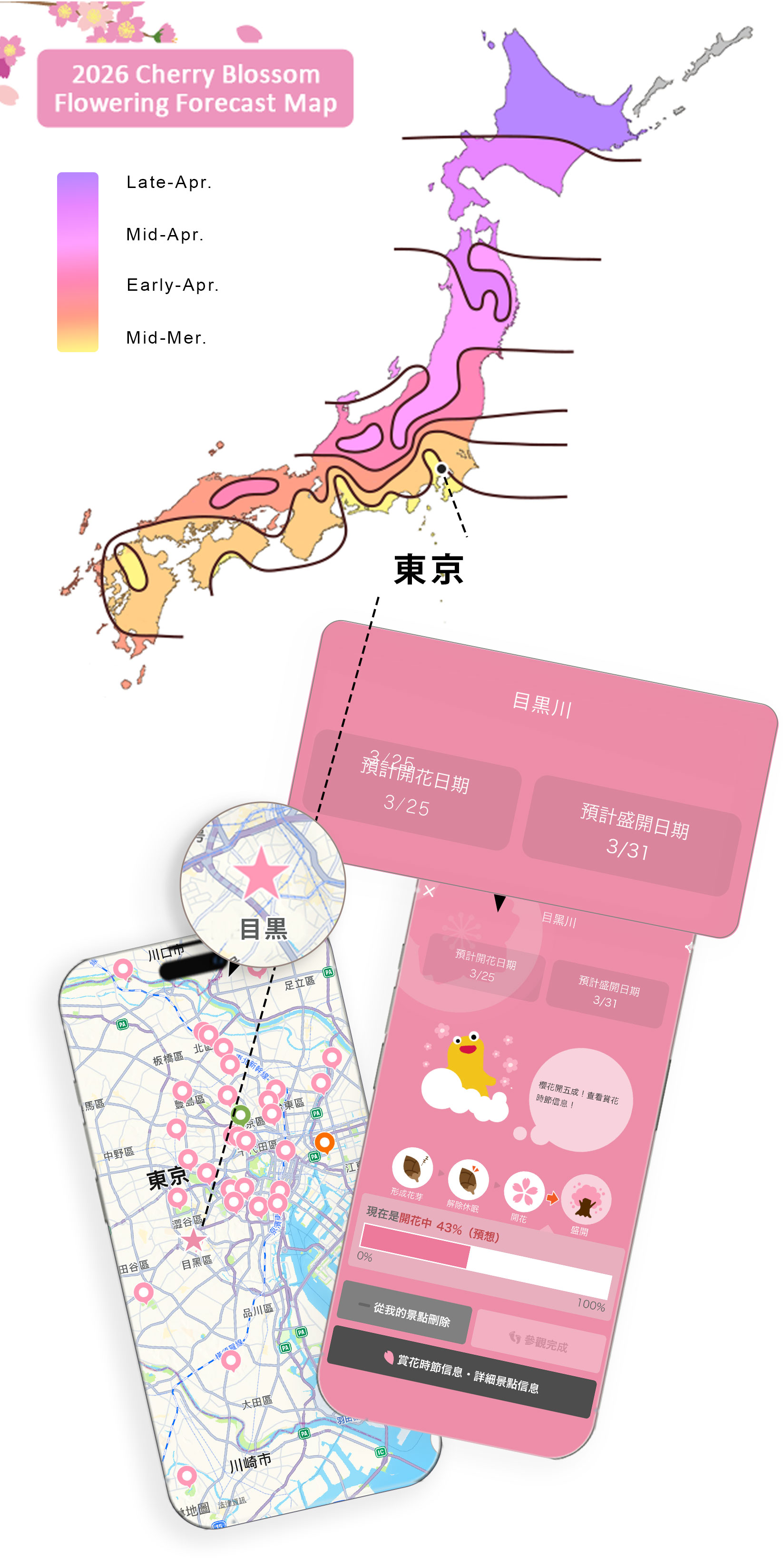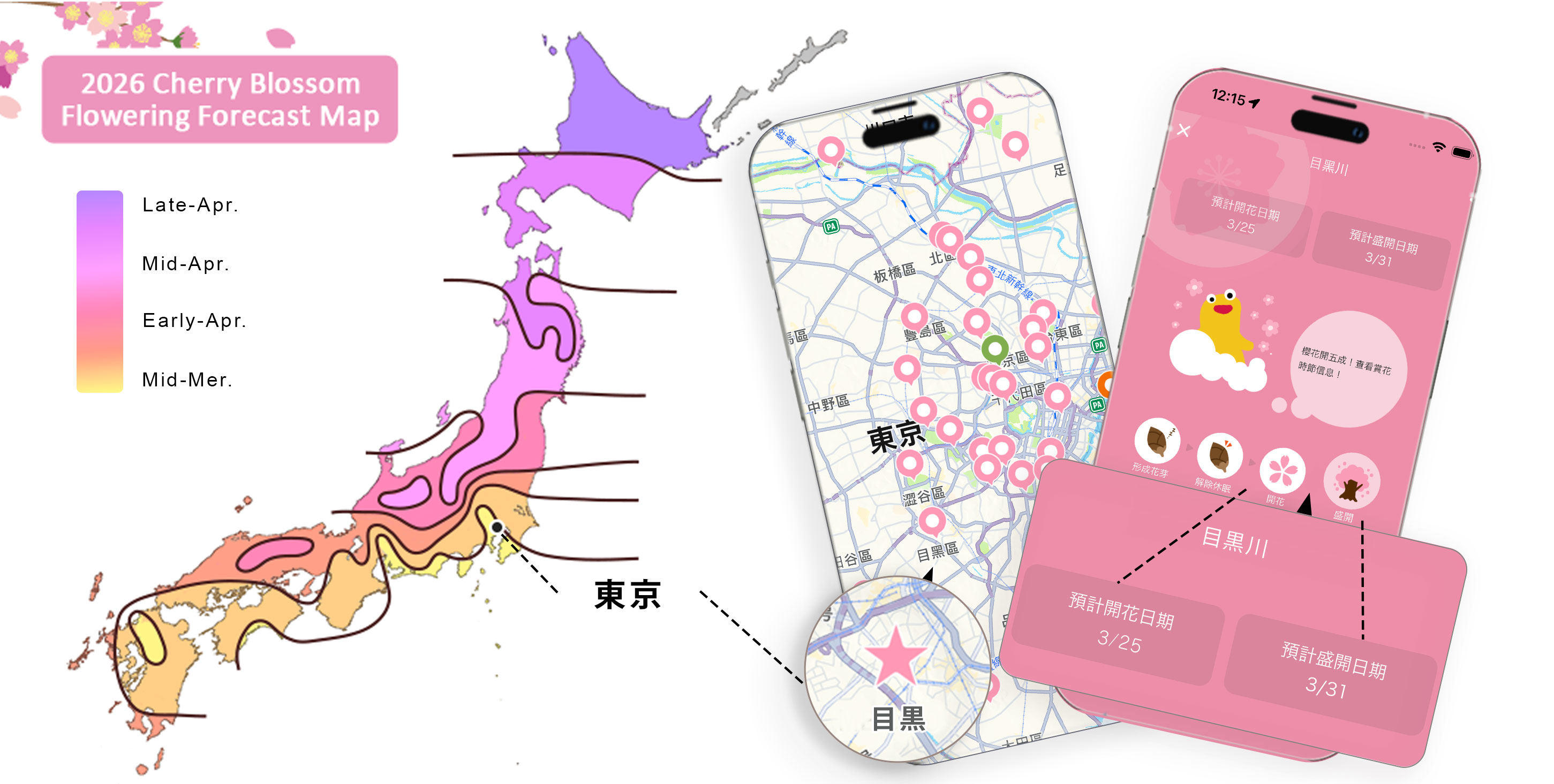 櫻花導航應用程式將在花期期間每週四更新所有地點的花期資訊